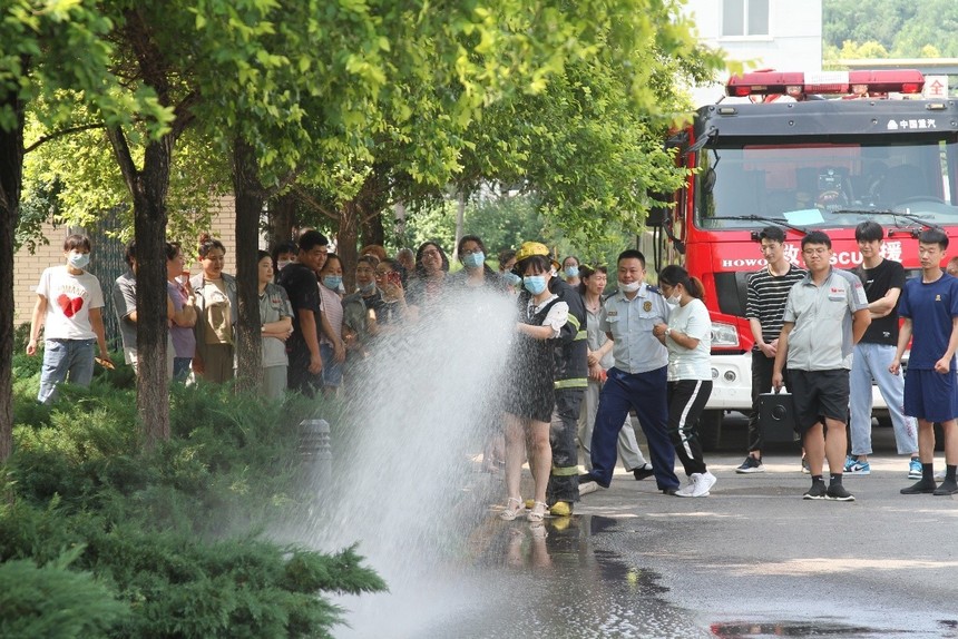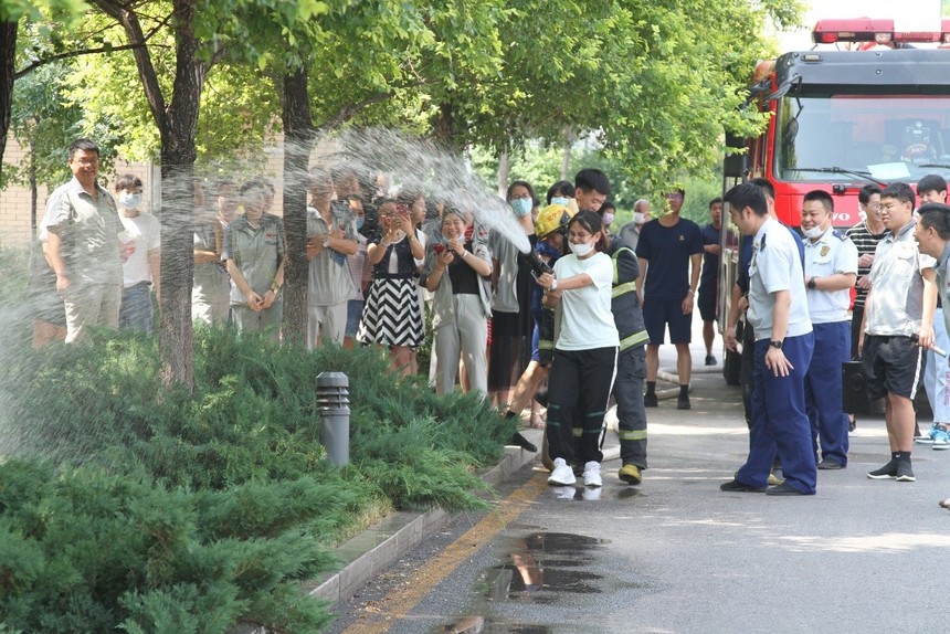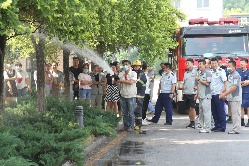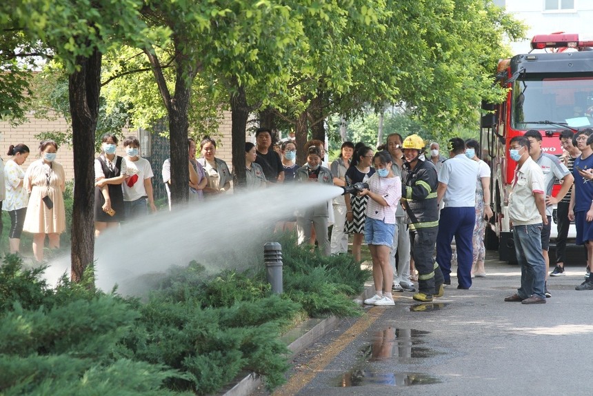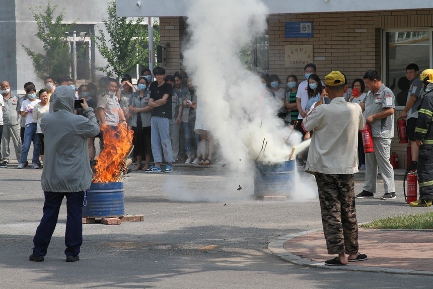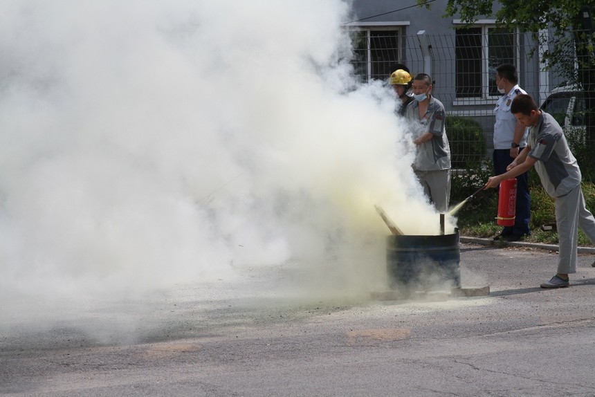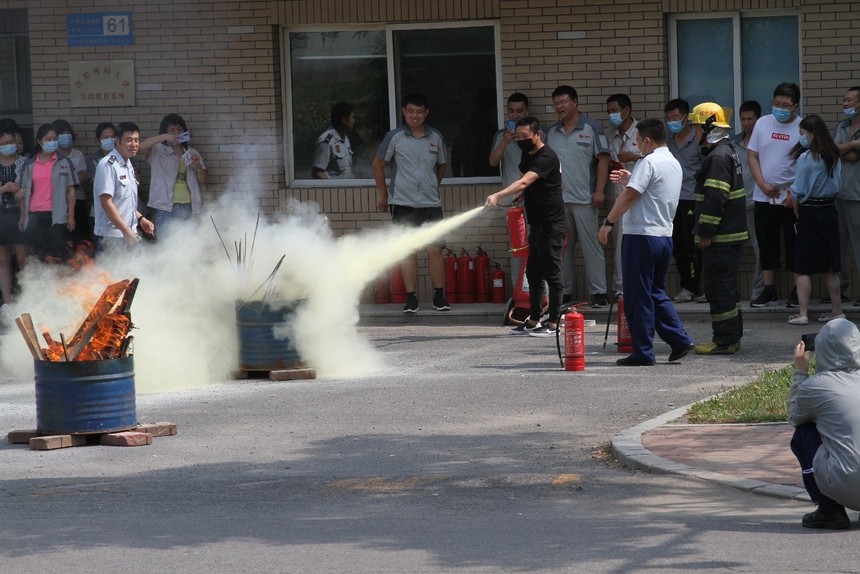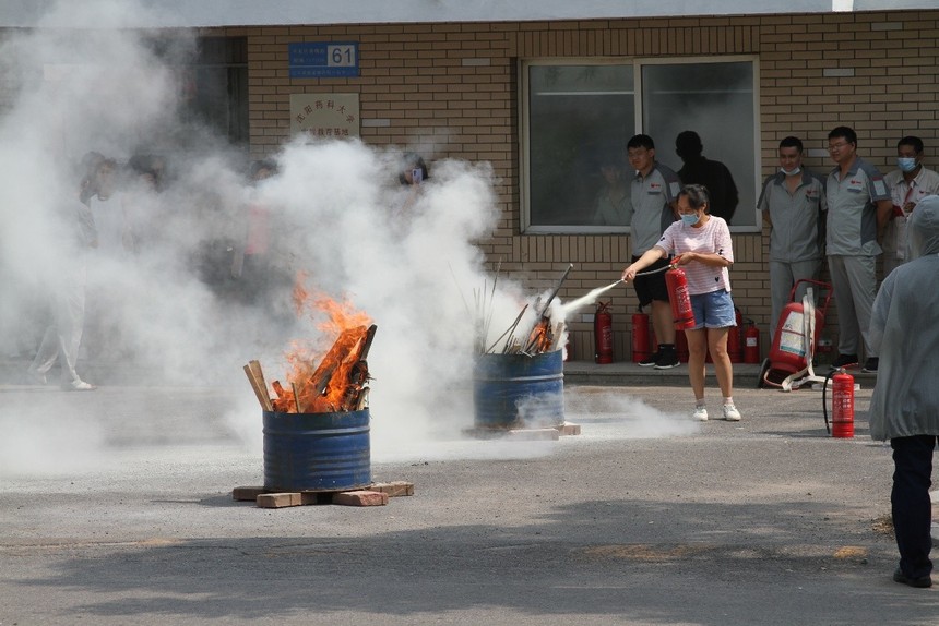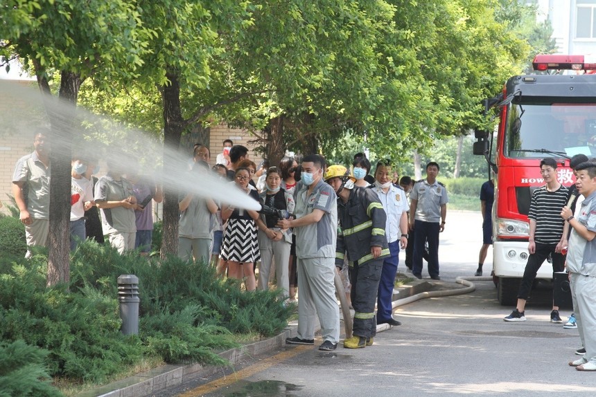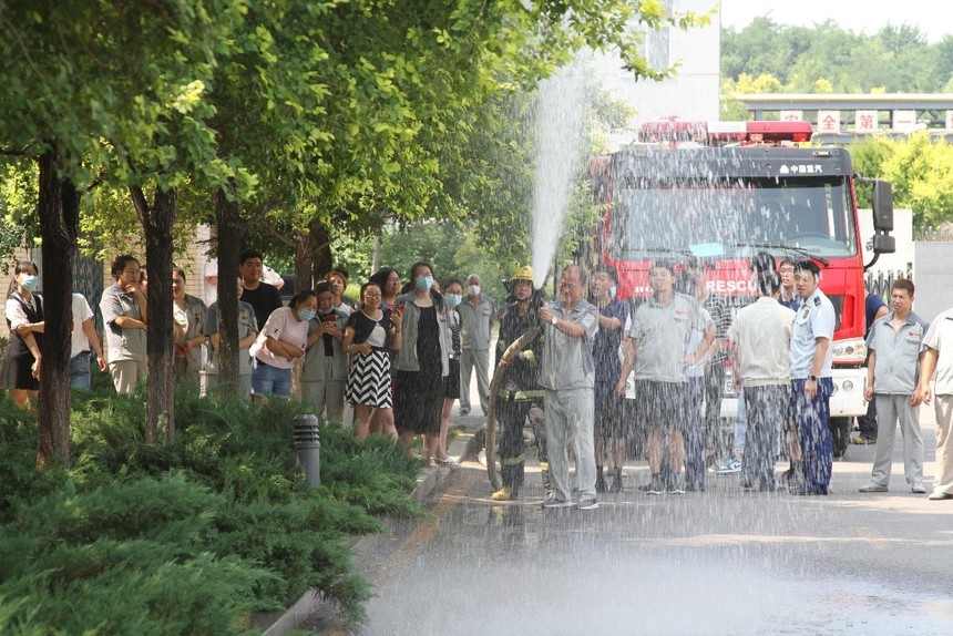 演練前,消防大隊王參謀向全體員工講解了火災的特點、滅火器、消防栓等消防器材的使用方法、疏散逃生法則等消防知識,現場演示了滅火器的使用要領,并讓職工現場動手使用滅火器和消防栓進行滅火。